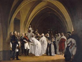 | Keywords: Abd-EL-Kader-And-Napoleon-III.jpg Artwork creator Ange Tissier title The president of republic-prince frees abd el kader amboise castle october 16 1852 Le prince-président de la république rend la liberté à Abd-el-Kader Château d'Amboise 16 octobre 1852 oil on canvas cm 350 465 Versailles Institution Versailles ANGE TISSIER 1861 signature date 000PE009458 1861 PD-old Napoleon III of France Abdelkader El Djezairi 1852 Ange Tissier Château d'Amboise Leroy de Saint-Arnaud Charles-Marie-Augustin de Goyon Christophe Michel Roguet Pierre Jules Baroche French conquest of Algeria 1861 in art |