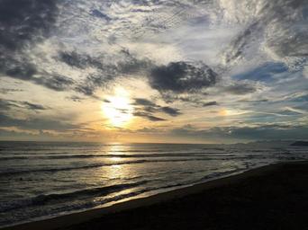 Keywords: abendstimmung sea surf wave clouds sunset beach afterglow sunlight evening sky water