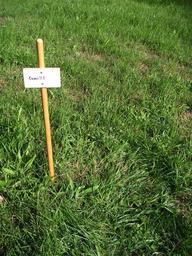 Keywords: Abgangsstab inUse.JPG en track start marked with signpost at left of the scent pad de Abgangsstab links am Fährtenabgang own Anka Friedrich 2008-08-14 Tracking dogs