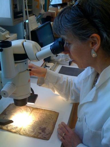 Keywords: http://thedigitalwalters.org/ httpthedigitalwaltersorg indoor The Walters Art Museum's book conservator looking through a microscope at mold damaged parchment. The Walters Art Museum's book conservator looking through a microscope at mold damaged parchment. |