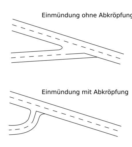 Keywords: Abkröpfung.svg de Einmündung ohne und mit Abkröpfung own Mailtosap 05 02 2011 Cc-zero Roadworks