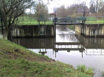 Keywords: Ablauf-nordgraben.jpg 52 35 28 N 13 26 11 E region DE-BE_heading 015 Wehranlage zum à berlauf aus dem Pankebecken Blankenburg in den Nordgraben own 2008-04-10 Boonekamp Panke in Berlin-Blankenburg