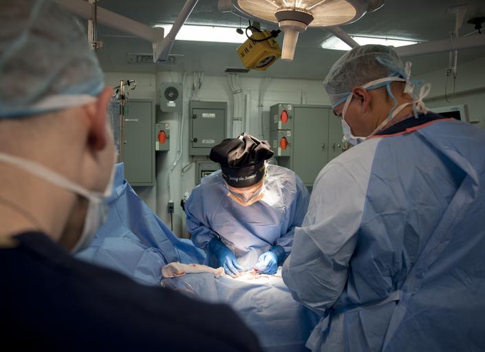 | Keywords: Aboard the aircraft carrier USS George H.W. Bush (CVN 77). GHWB is underway conducting training and completing qualifications in preparation for a 2017 deployment. 160825-N-SO730-102.jpg en 160825-N-SO730-102 ATLANTIC OCEAN Aug 25 2016 160825-N-SO730-102 ATLANTIC OCEAN Aug 25 2016 Ship's Surgeon Lt Cmdr Krista M Puttler and Hospital Corpsman 3rd Class Brandon D Day perform a hernia repair surgery aboard the aircraft carrier USS George H W Bush CVN 77 GHWB is underway conducting training and qualifications in preparation for a 2017 deployment U S Navy photo by Mass Communication Specialist Seaman Joe Boggio/Released Unit Navy Media Content Services DVIDS Tags flight operations; George H W Bush ; CVN 77 ; USS George H W Bush; aircraft carrier; Navy; NMCS; DVIDS Bulk Import 2016-08-25 Joseph C Boggio https //www dvidshub net/image/2824408/aboard-aircraft-carrier-uss-george-hw-bush-cvn-77-ghwb-underway-conducting-training-and-completing-qualifications-preparation 160825-N-SO730-102 2016-08-30 00 01 USS GEORGE H W BUSH N/A US PD-USGov-Military-Navy USS George H W Bush CVN-77 Images from DoD uploaded by Fæ |