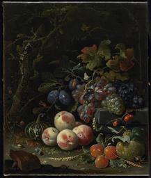 | Keywords: Abraham Mignon - Still Life with Fruits, Foliage and Insects - 87.4 - Minneapolis Institute of Arts.jpg Dutch still life with fruit foliage and insects 23 x 19 1/2 in 58 42 x 49 53 cm canvas 87 4 https //api artsmia org/images/3584/3948/large jpg Q1700481 Oil on canvas Still Life with Fruits Foliage and Insects https //collections artsmia org/index php page detail id 3584 Q20891312 | ||||