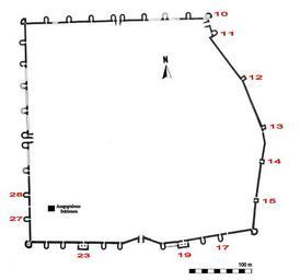 | Keywords: Abrittus umwehrun.jpg de Umwehrung des Kastells Abrittus Razgrad BG Zustand 4 Jhdt n Chr own Veleius 06 02 2013 Abzeichnung aus Teofil Iwanow Abritus Rimski kastel i rannovizantijski grad v Dolna Mizija Teil 1 Topografija i ukrepitelna sistema na Abritus Bulg Akad na naukite Archeol Inst i Muzej Sofia 1980 mit engl Zusammenfassung S 236-248 Abritus a Roman Castle and Early Byzantine Town in Moesia Inferior Cc-zero Abrittus Floor plans of fortresses in Bulgaria | ||||