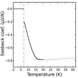 | Keywords: Absolute Seebeck coefficient of lead at low temperature.svg en Absolute Seebeck coefficient of lead at low temperature according to Christian Jan Pearson Templeton 1958 0-7 K Seebeck is zero since lead is superconducting 7-20 K Seebeck measured by thermocouple against superconducting niobium-tin 20 K and up Seebeck extrapolated by Christian et al using previous results of Borelius 1932 See File Absolute Seebeck coefficients of various metals up to high temperatures svg for source code 2014-01-11 19 35 10 own Nanite cc-zero Uploaded with UploadWizard Thermoelectricity |