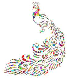 Keywords: abstract animal art bird colorful prismatic chromatic rainbow peacock iridescent circles dots plumage