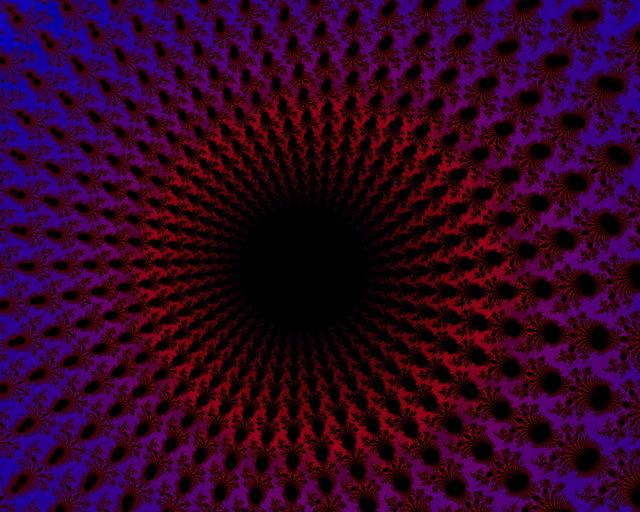 Keywords: abstract art tunnel red blue mandelbrot fractal spiral darkness optical deception three dimensional surreal modern art digital eye pupil iris depression self-similar