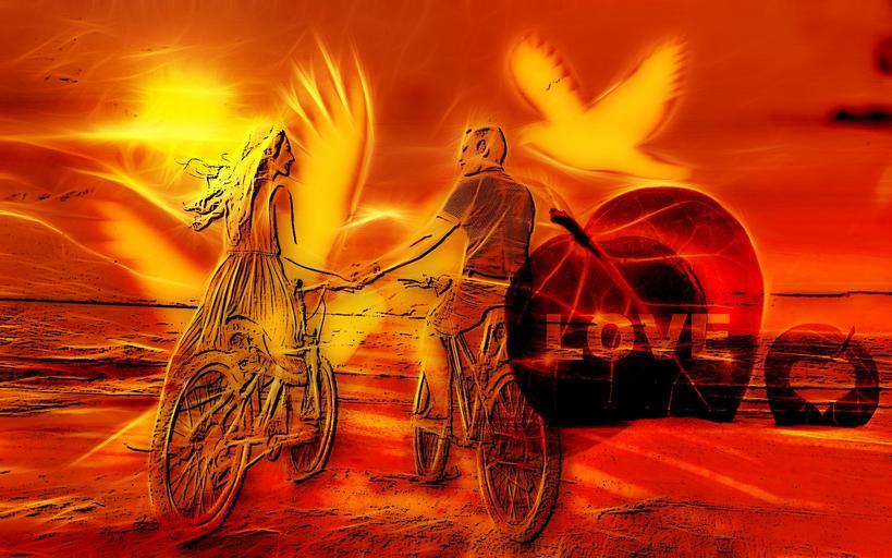 Keywords: abstract birds silhouette human personal wheel bike cyclists heart love affection partner friendship together peace dove pair twitter dove