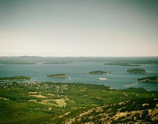Keywords: acadia national park maine aerial view landscape scenic bay water forest trees woods nature outside sky clouds vista destinations country countryside shoreline