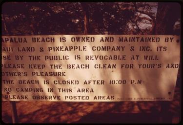 | Keywords: ACCESS TO BEACHES IS NOT YET A CRITICAL PROBLEM ON MAUI, BUT SIGNS LIKE THIS MAY BE A FORETASTE OF THE FUTURE - NARA - 554060.jpg Scope and content General notes 554060 Local identifier 412-DA-11608 Environmental Protection Agency 12/02/1970 - NARA-Author O'Rear Charles 1941- Photographer 3403717 <br /> Maui Maui Hawaii United States North and Central America island 4210292 20 8 -156 33 <br /> Still Picture Records Section Special Media Archives Services Division NWCS-S National Archives at College Park 8601 Adelphi Road College Park MD 20740-6001 10/1973 Record group Record Group 412 Records of the Environmental Protection Agency 1944 - 2006 Record group ARC 708 DOCUMERICA The Environmental Protection Agency's Program to Photographically Document Subjects of Environmental Concern compiled 1972 - 1977 Series ARC 542493 File unit File unit ARC Variant control numbers Agency-Assigned Identifier 194/28/011608<br /> NAIL Control Number NWDNS-412-DA-11608 Other versions <gallery> File ACCESS_TO_BEACHES_IS_NOT_YET_A_CRITICAL_PROBLEM_ON_MAUI _BUT_SIGNS_LIKE_THIS_MAY_BE_A_FORETASTE_OF_THE_FUTURE_-_NARA_-_554060 tif tif File ACCESS_TO_BEACHES_IS_NOT_YET_A_CRITICAL_PROBLEM_ON_MAUI _BUT_SIGNS_LIKE_THIS_MAY_BE_A_FORETASTE_OF_THE_FUTURE_-_NARA_-_554060 jpg jpg </gallery> NARA-cooperation PD-USGov Maui |
