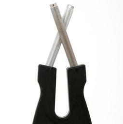 Keywords: accessory aluminum appliance blade breakfast chef chrome closeup close-up cook cookery cooking culinary cut domestic equipment food gadget handheld handle home household implement isolated isolation item kitchen kitchenware knife knives macro metal object over point sharp sharpen sharpener shiny silver slice stainless steel tool utensil utility white