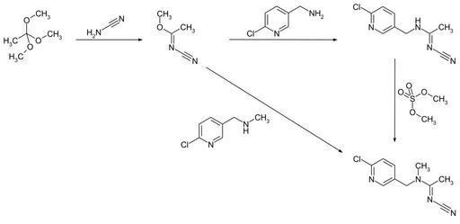 Keywords: Acetamiprid synthesis 01.svg en Synthesis of acetamiprid de Synthese von Acetamiprid own Steffen 962 2015-05-12 PD-chem Acetamiprid Cc-zero