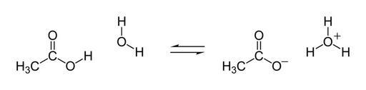 Keywords: Acetic-acid-dissociation-2D.png en Scheme of the dissociation of acetic acid to acetate with structural formulae A water molecule is protonated to form a hydronium ion in the process Own 2008-12-04 Ben Mills Benjah-bmm27 thumb left Images by Ben Mills Acetic acid Acid-base reactions |