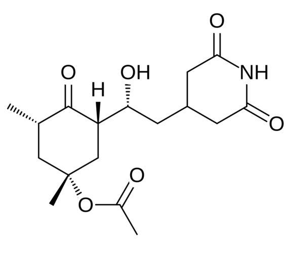 Keywords: Acetoxycycloheximide.svg Chemical structure of acetoxycycloheximide Own 12 28 20 May 2014 UTC Ed Edgar181 Glutarimides Acetate esters