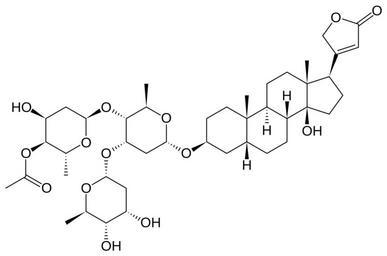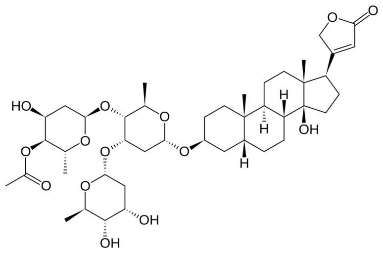 Keywords: Acetyldigitoxin.svg Skeletal formula of acetyldigitoxin Created using http //www acdlabs com/download/chemsk html ACD/ChemSketch 10 0 and Inkscape Own 2007-08-19 Fvasconcellos 22 48 19 August 2007 UTC Glycosides