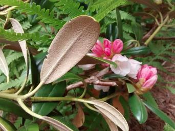 Keywords: Rhodo R5I leaf beneath and buds 5i rhodo latemay ach05