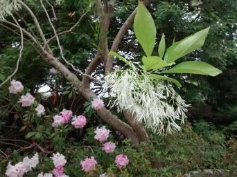 Keywords: Rhodo R7H bloom behind fringe free whiteflower pinkflower d5 r8 rhodo earlyjune 7h chionanthusvirginicus ach07 earlyjun