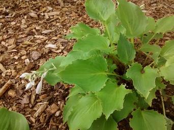Keywords: hosta 23J a flowerin' Hosta longipes latifolia confirmed by combo of red spotted petioles and glaucous bottom of leaf white flower 23 hosta earlysept ach23