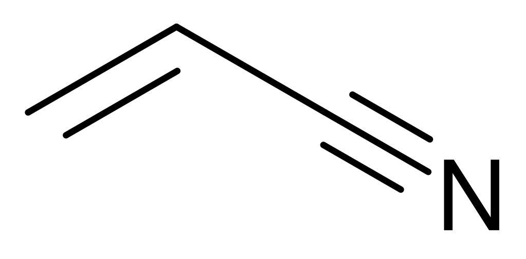 Keywords: Acrylonitrile-2D-skeletal.svg ru Ак илонит ил en Skeletal formula of acrylonitrile 2012-03-14 own Хо ев Се гей 150px cc-zero PD-chem Uploaded with UploadWizard Acrylonitrile
