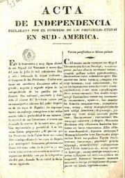 | Keywords: Acta Independencia argentina quechua.jpg Acta de Independencia de las Provincias Unidas en Sud América en español y en quechua Act of Independence of the United Provinces of South America today's Argentina in Spanish and Quechua Archivo General de la Nación - Argentina photo from an original printed in Buenos Aires in 1816 by Imprenta de Gandarillas y Socios Author not required Spanish text / texto en español ACTA <br /> En la benemérita y muy digna ciudad de San Miguel de Tucumán a nueve dÃas del mes de julio de mil ochocientos diez y seis terminada la sesión ordinaria el Congreso de las Provincias-Unidas continuó sus anteriores discusiones sobre el grande y augusto objeto de la independencia de los pueblos que lo forman Era universal constante y decidido el clamor del territorio entero por su emancipación solemne del poder despótico de los reyes de España; los representantes sin embargo consagraron á tan arduo asunto toda la profundidad de sus talentos la rectitud de sus intenciones é interés que demanda la sanción de la suerte suya pueblos representados y posteridad A su término fueron preguntados si querÃan que las Provincias de la Unión fuesen una nación libre e independiente de los reyes de España y su metrópoli Aclamáron primero llenos del santo órden de la justicia y uno á uno reiteráron sucesivamente su unanime y espontaneo decidido voto por la independencia del paÃs fixando en su virtud la determinación siguiente DECLARACION <br /> Nos los representantes de las Provincias-Unidas en Sud-América reunidos en congreso general invocando al Eterno que preside el universo en el nombre y por la autoridad de los pueblos que representamos protestando al cielo á las naciones y hombres todos del globo la justicia que regla nuestros votos declaramos solemnemente á la faz de la tierra que es voluntad unánime é indubitable de estas provincias romper los violentos vÃnculos que las ligaban á los reyes de España recuperar los derechos de que fueron despojados e investirse del alto carácter de una nación libre é independiente del rey Fernando 7 sus sucesores y metropoli; quedar en consecuencia de hecho y de derecho con amplio y pleno poder para darse las formas que exija la justicia é impere el cúmulo de sus actuales circunstancias Todas y cada una de ellas asà lo publican declaran y ratifican comprometiendose por nuestro medio al cumplimiento y sosten de esta su voluntad baxo del seguro y garantÃa de sus vidas haberes y fama ComunÃquese á quienes corresponda para su publicación y en obsequio del respeto que se debe a las naciones detállense en un manifiesto los gravÃsimos fundamentos impulsivos de esta solemne declaración Dada en la Sala de sesiones firmada de nuestra mano sellada con el sello del congreso y refrendada por nuestros diputados secretarios Francisco Narciso de Laprida diputado por San Juan presidente <br /> Dr Antonio Saenz diputado por Buenos Ayres <div class prose> Versión parafrástica en idioma quichua ” Cai sumacc ancha camayocc San Miguel Tucmanmanta hatum llacctapi waranccapusacc pachacc chunca socctayocc watacc ccanchis quillacc isckon ppunchaynimpi llacctanchecc raycu cchawanancupacc Hamauttacuna hatun tantacuy congreso nisccapi tantascca tucui soncconcuwan tucui yachaynincuwan unancharccancu ttaccacuynincheccta cunancama camachicquenchecc auccacunamanta huc similla tucuyneccpi llacctanchecc cunacc cay ruracunanta munasccancu uyaricun huc munaylla hinantin ruraynincuwan yuyaynincuwan wañuy wañuy wañuy munapayasccancuta sutti suttipi ricuchincu; chaywampis yuyaspa cay hatun simipi casccanta paycunacc llacctancunacc wawancunacc wawampapis cusisamin ú chiquin Hamautta Ranticuna alliy alliymanta huctawan huctawan cai hawa rimarccancu Allin allinta unanchaspañari tapuscca carccancu Munanquichecchu tucui llacctacuna piraycuchus Ranti canquichecc España reycunamanta ttaccacuspa payccunac quiquin atiyninpi camachiynimpi cquheparinancuta Caita uycariytawan usccay usccayta hatarispa munaycunnispa ccaparincuc; aswan callpayocc cai sutti munaynincu cananpaccri hucmanta hucmanta munaycu nerccancu; tucuipa yachayninman chayananpaccri cai hinata cquellccarccancu Ñoccaicu cai Americacc Anti suyumpi tantascca llacctacunacc Rantin ñoccaicuman Pacchacamaccta waccyaspa llacctaycucc sutimpi llacctaycucc camachiynimpi hanac-pachaman cai pacha tucui llacctacunaman tucui runacunaman soncoycucc llamppu checcan unanchayninta ricuchispa rimariycu yachachiycu Muyu-pachacc ccaillampi; sutti huc munaynillan cai tucuy llactacunacc ccasccanta lliqquiy saccra watanasta imawanchus yanccalla España Reycunaman watascca carccancu atiyninta suancunamanta ppataspari huc hatun llacta ruracunancu; paicuna quiquin cunan camachecc Rey Fernando ccanchismanta wawancunamanta llactanmantawan wiñaypacc ttaccascca; cairaycuri hatun sumacc atiywan sutippi cquecheparincu imaynachus aswan allin cancca cusisamimpacc tucui imancu unanchascca hina camachiyta paycuna quiquin maquinmanta ccocunanpacc; tucui tanta ñaupaccta cquhepamanri hucmanta hucmanta hinata ccaparincu yachachincu huctawan huctawanri rincu; caita hunttanancupaccri ñoccaycupi chura cuspa puraccmanta watanacuncu causaynincuwan tiyapuynincuwan sumac sutincuwan Picunamanchus yacha chicunan yachachiscca cachun tucuipa vincrinman chayanamanpacc; hawa llactacunacc unanchanampacri imaraycuchus ruranchecc cai sumacc checcan rurayta sutti cquelccapi tucui churacuchum Congreso wasipi rurasca selloycuwan sellasca secretarioycucc cquellccanwan callpachascca Cai hina juramentota tucui llacctancheccpi tiyacucc runacuna ¿Juranquichu Pacha-camacc Apu Yayanchecc raycu santa cruz raycuwampis + ttimpurichiyta hamachhaita mayneccpipis camarichiyta cai Americacc Anti Suyumpi tantascca hatun llaxtacunacc ttaccacuyninta ccanchis Fernando España reymanta wawasninmanta llacctanmanta tucui hawa llaccta camachecc cunamantawan ¿Juranquichu Pacha-camacc Apu Yayancheccman ari ninquichu llacctancheccman atiyninrai