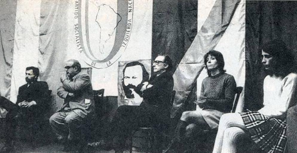 | Keywords: Acto del PSIN.jpg Julio Fernández Baraibar Fernando Carpio Jorge Abelardo Ramos Ana María Giacosa y Silvia Benítez en el primer acto público del PSIN en Buenos Aires en 1970 Own 1970 Julio Fernández Baraibar Jorge Abelardo Ramos Politics of Argentina Political parties in Argentina 1970 in Argentina Black and white photographs of Argentina Fernando Carpio |