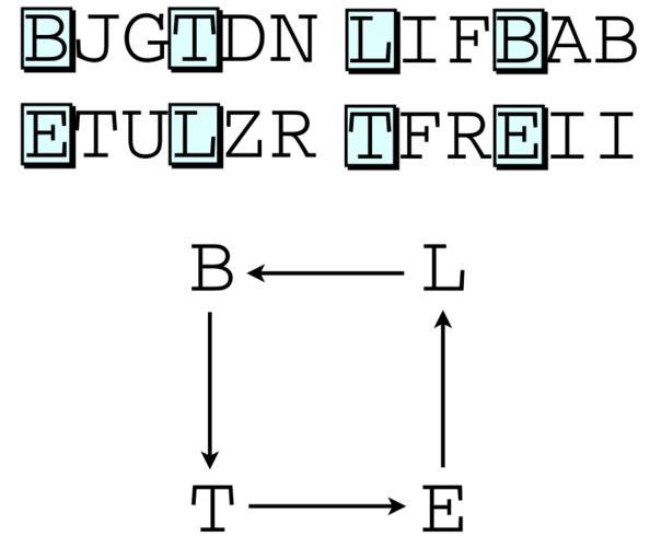 Keywords: AD-cycle.png AD-cycle svg A 4-cycle formed from the first and fourth letters of four Enigma message indicators as used before 1938 by the German military Matt Crypto 14 21 13 December 2005 UTC Cryptography diagrams