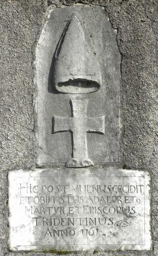 | Keywords: Adalpreto2.JPG it lapide dedicata al vescovo Adalpreto own AlexisD93 2010-05-18 45 89693 11 04324 region IT-TN_scale 10 ImageNote 1 21 177 149 85 200 267 2 <center>HIC POST VULNUS CECIDIT ET OBIIT SANCTUS ADALPRETUS MARTYR ET EPISCOPUS TRIDENTINUS ANNO 1161</center> ImageNoteEnd 1 Gravestones in Rovereto |