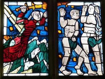 Keywords: adam eva adam and eve stained glass church bible creation window christianity paradise human woman angel sword fig leaf expulsion