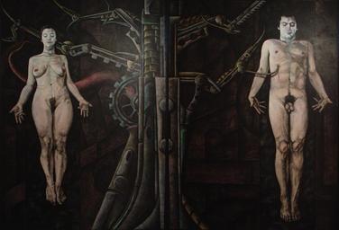 Keywords: adam and eve religion painting woman man machine cloning art nudity dna adam and eve in the age of cloning