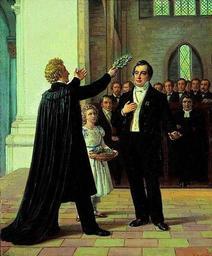 | Keywords: Adam Oehlenschläger at Lund Cathedral 1829.jpg en Adam Oehlenschläger is publicly crowned with laurel by the Swedish poet Esaias Tegner in front of the high altar in Lund Cathedral as the Scandinavian King of Song The event cements his position as the leading proponant of Romanticism in the region and in the same time heralds the emergence the Scandinavismmovement Frederiksborg Museum Creator Constantin Hansen 1866 PD-old-100 Adam Gottlob Oehlenschläger Esaias Tegnér Constantin Hansen 1829 in Denmark 1829 in Sweden Interior of Lunds domkyrka Scandinavism Laurel wreaths in art |