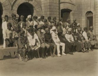 | Keywords: Aden Lahej Meeting.JPG en The Lahej Conference of 1930 Meeting in Lahej between the Resident of Aden Sir Stewart Symes center and various tribal chiefs and rulers of the Western Protectorate To the left of Sir Symes is Sultan Abdul Karim Fadhl of Lahej the most important state of the Western Protectorate To the left of Sultan Fadhl is the Amir of Dhala a strategic state bordering on Yemen then the Imamate of Yemen The other European in the front row is Bernard R Reilly then Assistant Resident Reilly who had been serving in Aden since 1912 will be the chief British official of Aden from 1931 to 1940 first as Resident then as Commissioner and finally as Governor 1937-1940 The photograph was taken outside the palace of the Sultan of Lahej 2014-05-20 19 26 00 Colonial Office Photographic Collection National Archives UK https //www flickr com/photos/nationalarchives/8507881906/in/photostream/lightbox/ Government of Aden 1930 PD-old-70 Uploaded with UploadWizard Aden Protectorate British Colony of Aden Sir Stewart Symes |