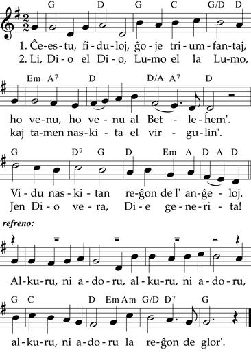 Keywords: adeste fideles esperanto oh come all ye faithful music christmas song famous notes