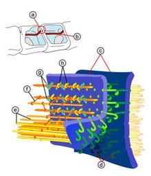 | Keywords: Adherens Junctions structural proteins-LangNeutral.svg the diagram shows a cell-cell junction called adherens or zonula adherens it also conatins the main proteins involved in it Language neutral version of Image Adherens Junctions structural proteins svg by LadyofHats 2008-06-09 original 2006-04-04 Lokal_Profil ” Original Mariana Ruiz I claim no copyright for the small changes to the original thus the license remains LadyofHats <gallery>Image Adherens Junctions structural proteins svg original</gallery> the diagram shows a cell-cell junction called adherens or zonula adherens it also conatins the main proteins involved in it - top a- Adherens Junctions Zonula adherens <br /> b- Actin<br /> c- Plasma membrane<br /> d- Cadherin<br /> e- Actin filaments<br /> f- α-actin<br /> g- Vinculins<br /> h- Catenin<br /> Ultrastructure diagrams Diagrams with language-neutral legends Cell junctions Adherens junctions |