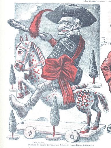 | View Original: | Adiós, valido. Parodia del retrato del Conde-duque de Olivares, Don Quijote, 28 de noviembre de 1902 (cropped).jpg (750x997) | |||