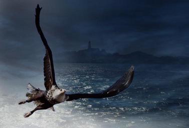 Keywords: adler bald eagle sea bird animal white tailed eagle bird of prey raptor city fog twilight fly wing blue photo montage composing