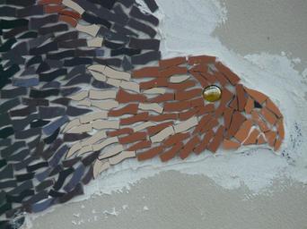 Keywords: adler bird head bill mosaic brown colorful tinker build art decoration mural decorative steinchen scrap fragments piecing together gypsum craft