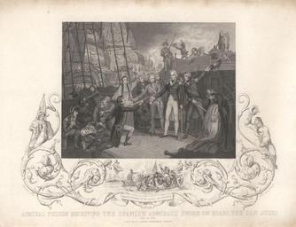 | Keywords: Admiral Nelson receiving the Spanish Admiral's Sword on Board the San Josef (Horatio Nelson, Viscount Nelson) by Daniel Orme.jpg Admiral Nelson receiving the Spanish Admiral's Sword on Board the San Josef Horatio Nelson Viscount Nelson by Daniel Orme died 1837 See source website for additional information This set of images was gathered by User Dcoetzee from the National Portrait Gallery London website using a special tool All images in this batch have been confirmed as author died before 1939 according to the official death date listed by the NPG D17805 date but author died in 1837 Daniel Orme died 1837 PD-old-100 DEFAULTSORT Nelson Horatio National Portrait Gallery London |