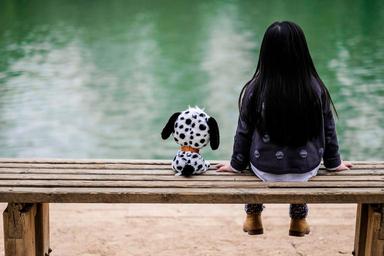 Keywords: admire thoughtful back bank girl toy dog lake rear view only bachelor tapeworm frields childhood