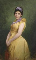 | Keywords: Adolf Echtler Dame in gelbem Kleid und Flieder im Haar 1894.jpg Artwork Adolf Echtler 1843-1914 1894 Oil on canvas cm 130 80 unknown Ad Echtler 1894 signature / date http //www dorotheum com Dorotheum other versions PD-old-100 Adolf Echtler 19th-century portrait paintings location missing 19th-century portrait paintings of unidentified women 1894 1894 oil on canvas paintings 1894 portrait paintings 19th-century oil portraits of standing women at three-quarter length 1894 Females with yellow dresses in art 1894 Images from Dorotheum Lilacs in art Flower crowns in art Portrait paintings of women with hair flowers 1894 Portrait paintings with natural background 1894 |