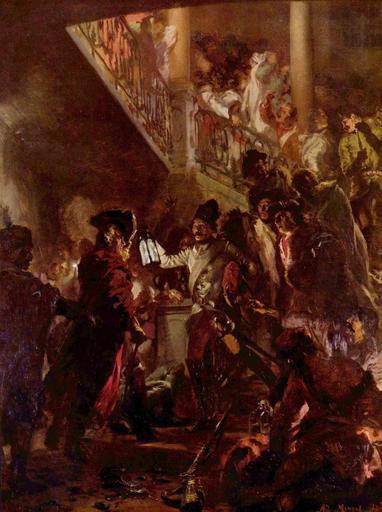 | Keywords: Adolf Friedrich Erdmann von Menzel 017.jpg Artwork de Bonsoir Messieurs Friedrich der Große in Lissa oil canvas cm 246 190 Kunsthalle Hamburg de Historienmalerei The Yorck Project 10 000 Meisterwerke der Malerei DVD-ROM 2002 ISBN 3936122202 Distributed by DIRECTMEDIA Publishing GmbH 1858 creator Adolph von Menzel http //mail wikipedia org/pipermail/wikide-l/2005-April/012195 html Other versions PD-old-100 PD-Art-YorckProject Friedrich II of Prussia by Adolph von Menzel Menzel Bonsoir Messieurs 1858 paintings in Germany Menzel Bonsoir Messieurs 1850s paintings in Germany People in rooms in art Paintings by Adolf von Menzel in the Hamburger Kunsthalle 19th-century oil on canvas paintings in Germany People standing on stairs in art |