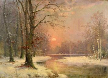 | Keywords: Adolf Kaufmann - Sonnenuntergang in Winterlandschaft.jpg Artwork creator Adolf Kaufmann langSwitch Podvečerní pohled do krajiny se zapadajícím sluncem nad zamrzlou řekou Blick in die Landschaft am Vorabend Sonnenuntergang über gefrorenem Fluss und Bäume Sunset in the landscape with ice-covered creek lined with trees oil canvas cm 74 100 object history credit line J Rollin ~ lower left signature langSwitch od rakouského malíře který tvořil pod několika pseudonymy Von einem österreichischen Maler der unter mehreren Pseudonymen bekannt ist by the Austrian painter who painted under many different pseudonyms accession number LangSwitch http //www papilio cz/cz/archiv php aukce a34 pol 13169 Aukční dům Zezula http //www papilio cz/de/archiv php aukce a34 pol 13169 Auktionshaus Zezula Brno http //www papilio cz/en/archiv php aukce a34 pol 13169 Auction house Zezula Brno Adolf Kaufmann Landscape paintings of Austria 19th-century landscape paintings Images from Zezula Auction House Paintings of winter PD-old-auto-1923 1916 |