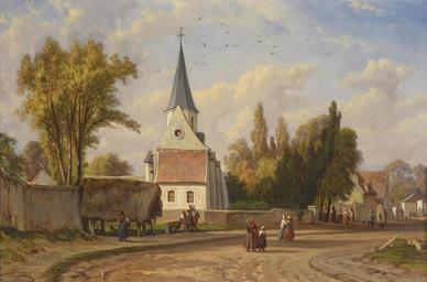 | Keywords: Adolph Böhm - Belebte Dorfstraße (1890).jpg 1890 1890 oil canvas cm 27 5 41 accession number object history credit line exhibition history ABöhm ~ lower left signature http //www arcadja com/auctions/fr/private/bohm_adolf/oeuvres/96812/0/ Dorotheum Wien 11 Dez 2012 Lot 158 via ARCADJA auction results PD-old-100 Adolph Böhm Images from Dorotheum |