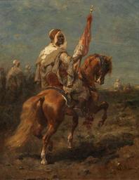 | Keywords: Adolph Schreyer - Arabischer Reiter.jpg Artwork Creator Adolf Schreyer oil canvas cm 35 27 5 accession number object history credit line exhibition history Ad Schreyer ~ lower right signature http //www hampel-auctions com/de/95-372/onlinecatalog-detail-n1065 html Hampel Auktionen 2013 12 13 lot 1208 PD-old-auto-1923 1899 DEFAULTSORT Schreyer Adolph; Arabischer Reiter Adolf Schreyer Paintings of men on horseback Images from Hampel Auctions | ||||