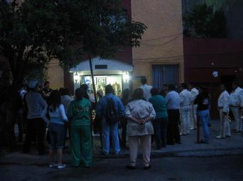 | Keywords: AdorationSantaMuerte.JPG en Believers paying homage to a shrine of the Santa Muerte on this saint's day of August 1 2008 Shrine located on Calle Dr Duran near Eje Central in Colonia Doctores Own Thelmadatter 2008-08-01 Colonia Doctores Santa Muerte |