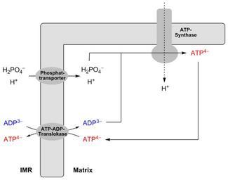 Keywords: ADP ATP shuttle.png de ADP ATP Shuttlesystem Version 1 Own Yikrazuul 7 12 08 Metabolic pathways Biology diagrams Diagrams in German