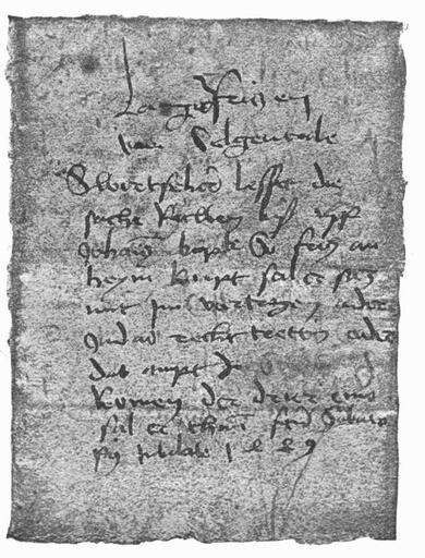 | Keywords: Adresse Femebrief.JPG Femebrief von 1489 - Anschrift Verkleinerte Wiedergabe; Original befand sich 1897 im Privatbesitz in Berlin; eingescannt aus Henne am Rhyn Dr Otto Kulturgeschichte des deutschen Volkes Erster Band Berlin 1897 S 374; Der Text lautet Langeck Fritzen van Selgentale Swertfeher lesset die sache ruwen biß uff Johannes Babt So Fritz an heym kompt sal er sich mit im vertragen oder das ampt zu Seligental komen der drier eins sol er thun Actum Sabato post Jubilate 1489 Original befand sich 1897 im Privatbesitz in Berlin; eingescannt aus Henne am Rhyn Dr Otto Kulturgeschichte des deutschen Volkes Erster Band Berlin 1897 S 374; Otto Henne am Rhyn Aufgefaltet befand sich auf der Rückseite folgender Femebrief thumb Femebrief von 1489 PD-old-100 Medieval documents from Germany 1489 in Germany 1489 documents Late Middle Ages |