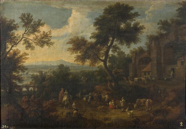 | Keywords: Adriaen Frans Boudewijns - Rest on the road.jpg Artwork Creator Adriaen Frans Boudewijns 1674-1717 Oil on canvas size cm 43 63 Institution Museo del Prado accession number P02083 https //www museodelprado es/coleccion/obra-de-arte/descanso-en-el-camino/d46a4a0f-f1c8-4de0-b9c0-e863df131eb7 object history credit line PD-old-100 DEFAULTSORT 5 Adriaen Frans Boudewijns Paintings by Adriaen Frans Boudewijns in the Prado Museum 17th-century oil on canvas paintings | ||||