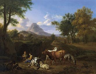 | Keywords: Adriaen van de Velde - Pastorale Scène.jpg Artwork Creator Adriaen van de Velde 1663 oil canvas size cm 48 5 62 5 Institution Museo Thyssen-Bornemisza accession number 417 1978 56 object history credit line exhibition history http //www museothyssen org/en/thyssen/ficha_obra/144 Museo Thyssen-Bornemisza Madrid PD-old-100 Adriaen van de Velde Dutch paintings in the Museo Thyssen-Bornemisza Pastoral landscape paintings | ||||