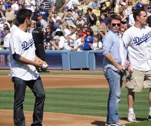 Keywords: Adrian Grenier, Kevin Connolly, Kevin Dillon (Dodger Stadium).jpg page is was here Cbl62 on en wikipedia Cbl62 Adrian Grenier Kevin Connolly Kevin Dillon Ceremonial first pitch Major League Baseball 2010 Los Angeles Dodgers season